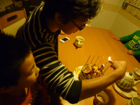 ろうそくの本数が多くなって来たから火をつけるのも熱くて大変。