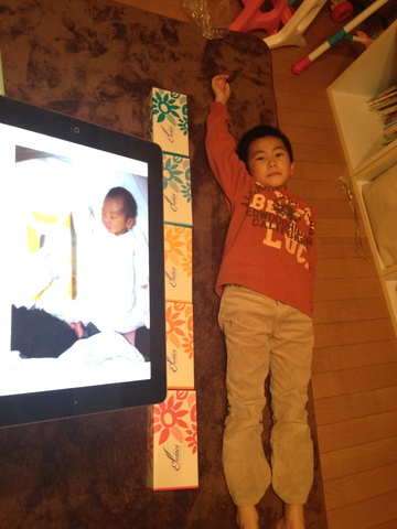 生後数日のころ、ティッシュの箱とそう変わらない、と撮った写真。今や5倍以上大きくなりました。