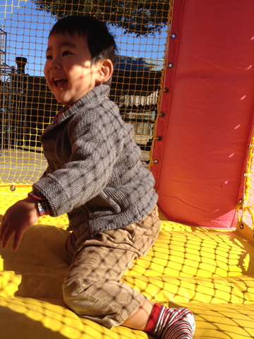 ぼよんぼよんと大興奮。寿は怖がって機嫌が悪かったのでやめといたのです。
