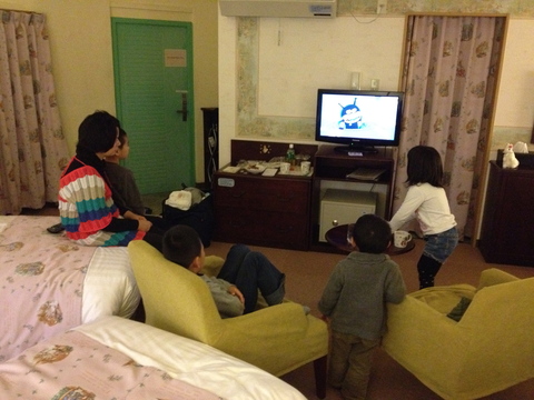 プレゼントはピーターラビットのシールでした。部屋に帰って、次のお目当てまでしばしの休息。