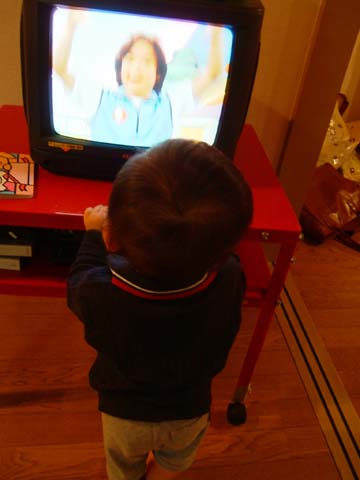 「おかあさんと一緒」の体操にくぎづけ☆ <br>(真吾は「ピッコロもポロリもいないじゃん」と真顔で言っていました。古いって。)