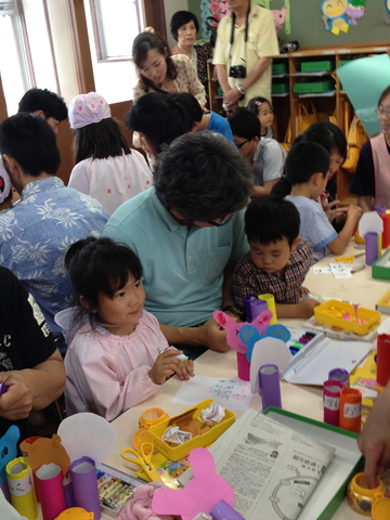 父の日参観のメインイベント第1弾。宝が楽しみにしていたお父さんとの工作タイムです。