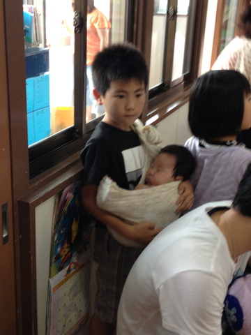 兄は乳飲み子の弟抱えて、妹の参観。我が家では普通のことなんだけど、文字に起こすとなんかすごいな、空。