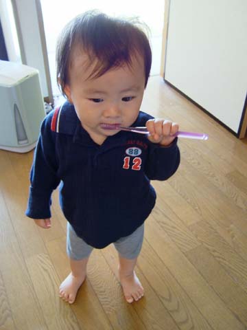 ゆうのニューはぶらしを強奪して、早速自分の口に入れた空。あーあーあー。