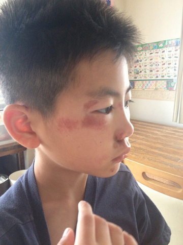 昨日、自転車で坂道で猛スピードでスリップして転びました。歯も欠けました。顔もこの通り。懲りるといいと思います。