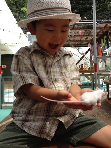 ネズミさん、だっこできたー!(茶色は怖いそうで、白のみ)