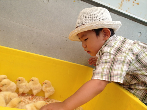 怖いところを乗り越えて、自分で触ってみたい段階に入った新。怖いながらも奮闘中。