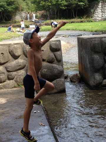 ポーズを決めて水に飛び込む遊び。
