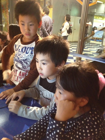 乗り物を設計するシミュレーターに挑戦中。みんなすごい集中っぷり。