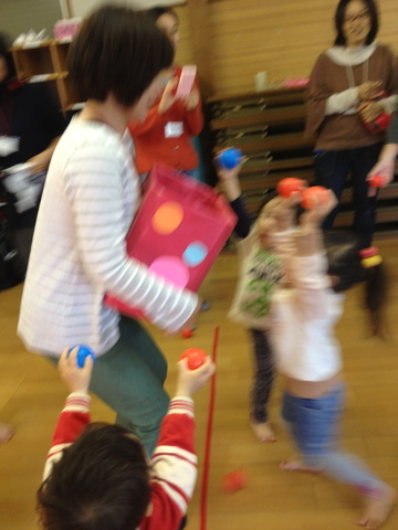 玉だけでなく自分ごとすっとんでいきそうな寿の玉入れ。