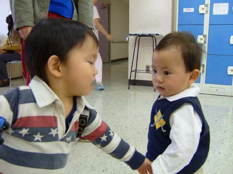 葵くんはみんなと握手して回るのがブームなんだって。空はまだ固まり中。