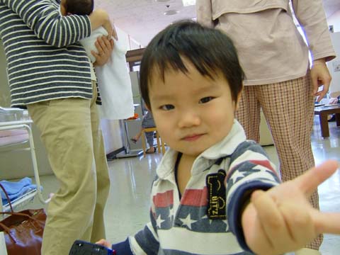 お母さんたちが後ろで立ち話してるけど、オレのことかっこよく撮ってねっ♪