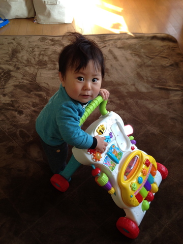 めきめきと成長している春。最近はこうして押して歩くのがブーム。本格的に歩くのももうすぐかな。