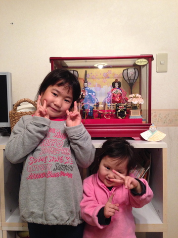 宝が発症と同時に学級閉鎖になってしまいましたので、今週いっぱいお休みの宝。せっかくなのでお雛さまの前でパチリ☆