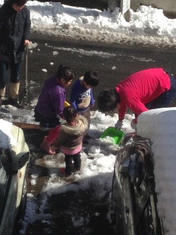 食料的に買い物に行きたいので、必死の雪かき。んー、やっぱり雪かきスコップ買っておくべきか。。