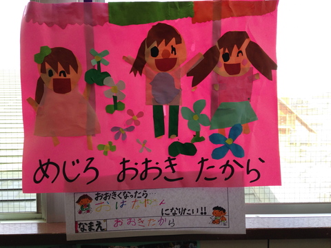 幼稚園最後の作品『将来の夢』。先生からは材料だけもらって、構想から製作までひとりでやったそうです。お花屋さん、上手にできていました。本当に成長したね。