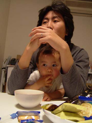 お菓子食べながらテレビ見てます。ホント、やることなすことそっくり。