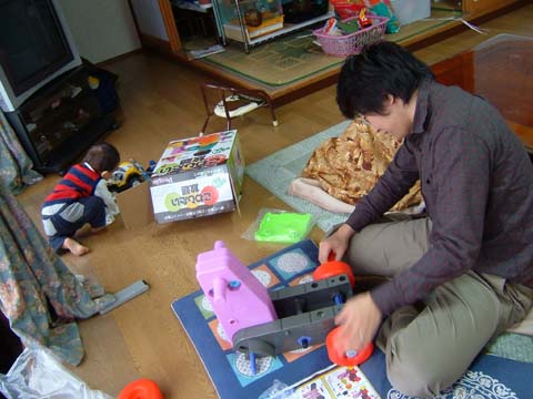 お父さんったら、全然できないんだもーん。オレ、こっちで遊んでるからぁ〜、あとよろしくぅ〜。
