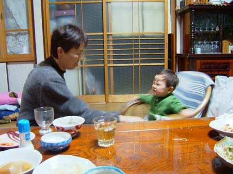 おばあちゃんの座椅子にすわって、ぐるんぐるんやってもらってゴキゲン☆