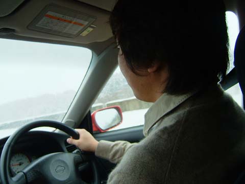 真吾はごあいさつまわりのために、生まれて初めて雪道ドライブ。