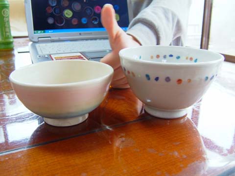 オペさん作のお茶碗を買ってきました♪左がトモコ用で右が真吾用。