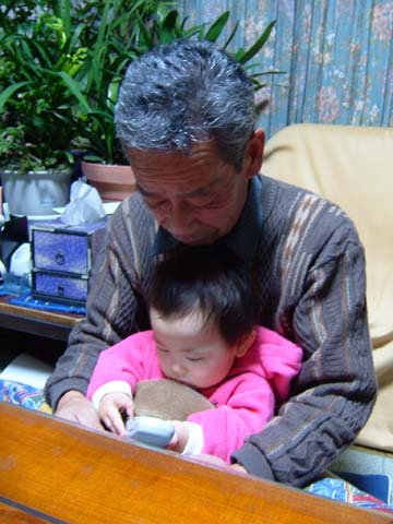ばーばやトモコが絶対いじらせてくれない電話を貸してくれる甘やかしじーじ。