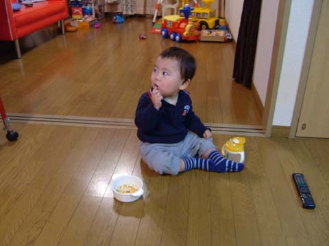 ニュース見ながらおやつ。この間に、トモコはせっせと夕食の準備をするのです。