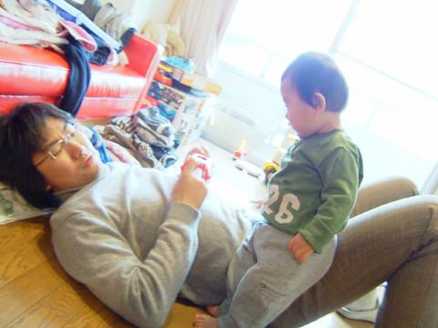 最近、お父さん、夜寝るときいないのに朝にはいるんだよね。出かける前に遊んでってよー。