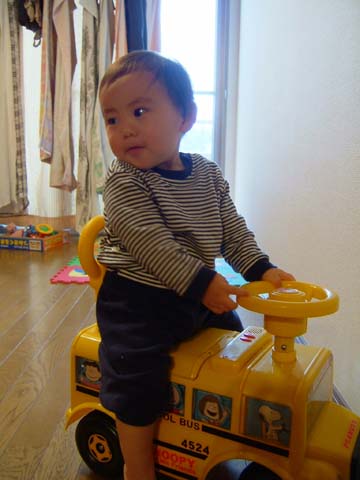 乗用おもちゃ、自分でこげるようになりました!いつの間に足が届くようになったんだろ。
