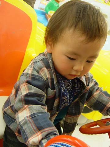こーんなに興味津々ですが、お金を入れてちゃんと動くと怖いので、ただ乗りしてます(笑)