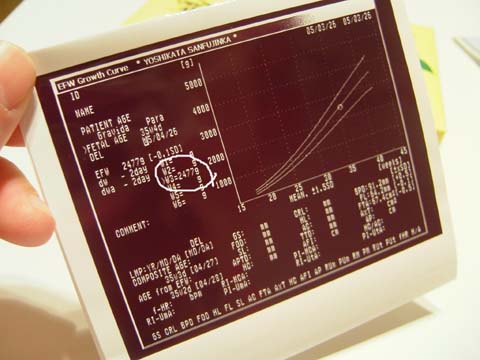 おなかの中、急成長している模様。予定日1ヵ月前だというのに、もう2477g(推定)あるなんて。。