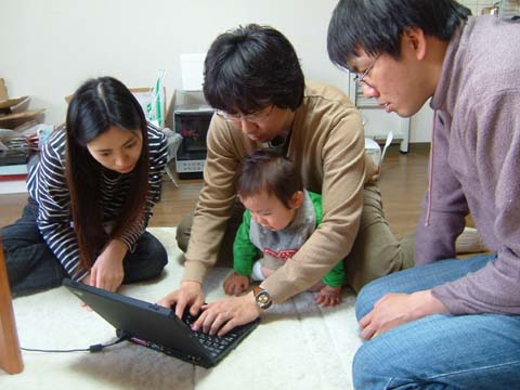 文佳さんのPCでネットワークの調子が悪いというので真吾が診察中。空もいっちょまえに参加してます。