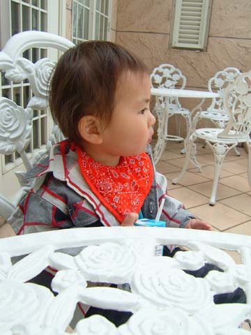 トモコの検診に付き合って産院へ。空は2階テラスの特等席に陣取ってます。