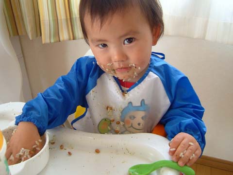 納豆ご飯を手づかみでいただく不敵な笑み。