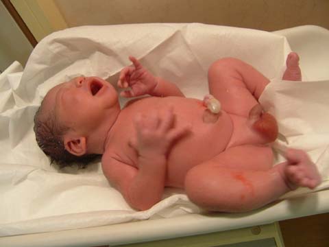 今回、へその緒は真吾がカットしました。でべそになったらお父さんを恨むのよぉ♪