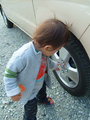 ばーばの新車、なかなかいいホイールだな。ボルトいじっとくか。