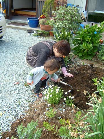 まずはー、土をほじくりかえします!よいしょ!よいしょ!!