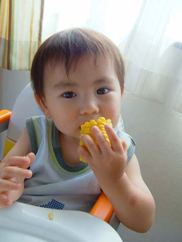 かぷっ。<br>(口の周りが汚れるのと皮が口に残るのがイヤだったらしく、あまり気に入らなかったモヨウ。おいしいのにねぇ。)