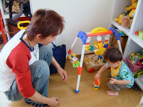 一段積むたびに2人で「キター!」って言う遊びをしているところ。