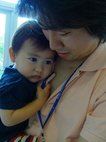 真吾の同僚の方々にごあいさつしたらこの通り。すっかり人見知りモード。