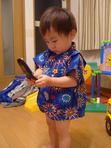わっくんの甚平さん、着てみたよ♪来週の夏祭りはこれで行ってみよう☆
