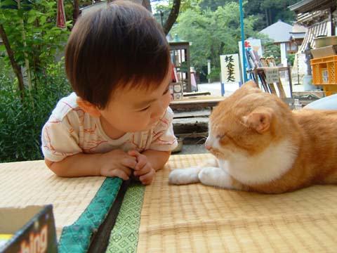 お店で飼ってる猫にごあいさつ。