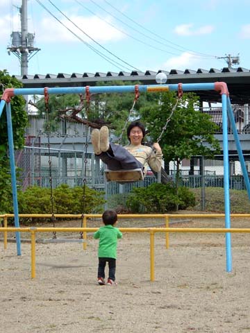 凪が寝たので、空をつれて公園へ。真吾ばっかり遊んでます。