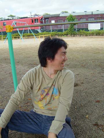 足攣りそうになったんだって。笑ってますが、へこんでます。