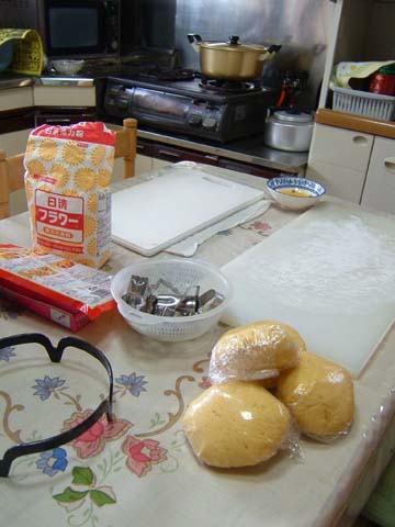 これからクッキーを作ります。トモコが下準備をしたので、あとは型を抜いて焼くだけ。