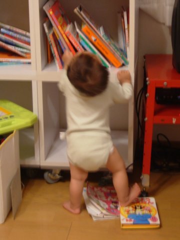 写真の後ろに写ってる奴を拡大するとこんなことしてます。この後、本が足に落ちて大惨事に。