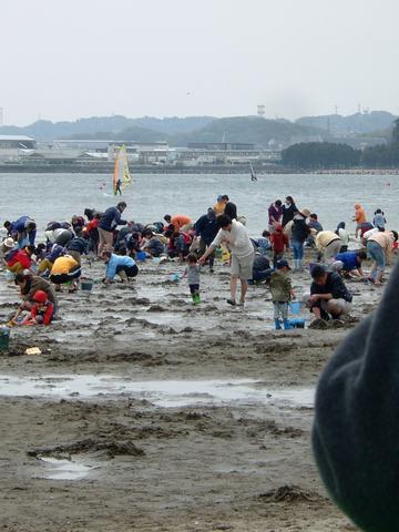 アサリを拾おうとしたら波がきた、と怖がってさっさと帰ってきました。