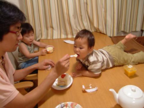今朝のけんかの仲直りに、みんなでケーキをいただきます♪