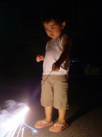 初めてのひとり手持ち花火。お兄ちゃんになったねぇ。