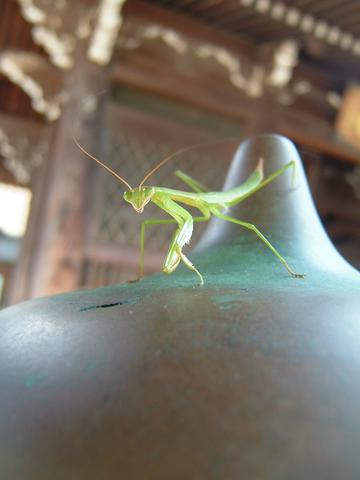 手水の涼を求めてかまきりが。